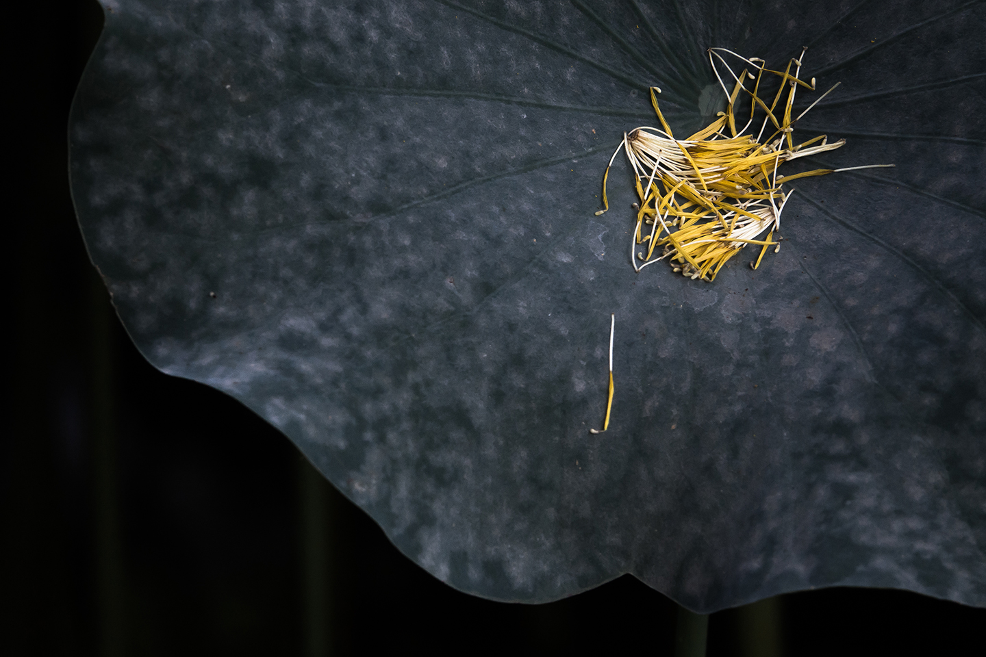 Posted on 2018年8月17日 by 今無庵 ハスの葉や 散りゆくおしべ 受けとめて 散りゆく大賀ハスのおしべとそれを受け止める葉っぱ 2018年8月撮影 使用カメラ:SONY DSC-RX10M3 F値:4.0 焦点距離:186.6mm シャッタースピード:1/250 ISO:400現像:Adobe Lightroom CC 薬師池公園の大賀ハス。 咲けば散るのが世の理ということで、散った花びらが葉っぱの上や水面に乗っているのを見かけます。 ところがこの葉っぱには、なぜか花びらではなく、おしべだけが乗っかっていて、あまり見慣れない組み合わせでした。 というわけでパシャリ!