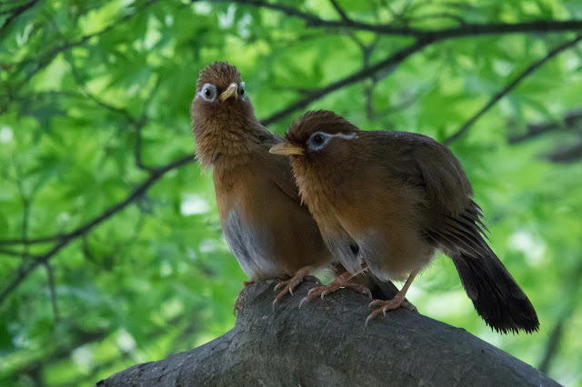 目の周りが白くなっているのでメジロの仲間かなと思ったのですが、後で調べたところガビチョウという外来種のようです。