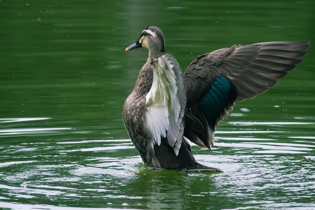 カルガモくらい大きい鳥は羽を広げた瞬間のショットも撮りやすくていいですね、