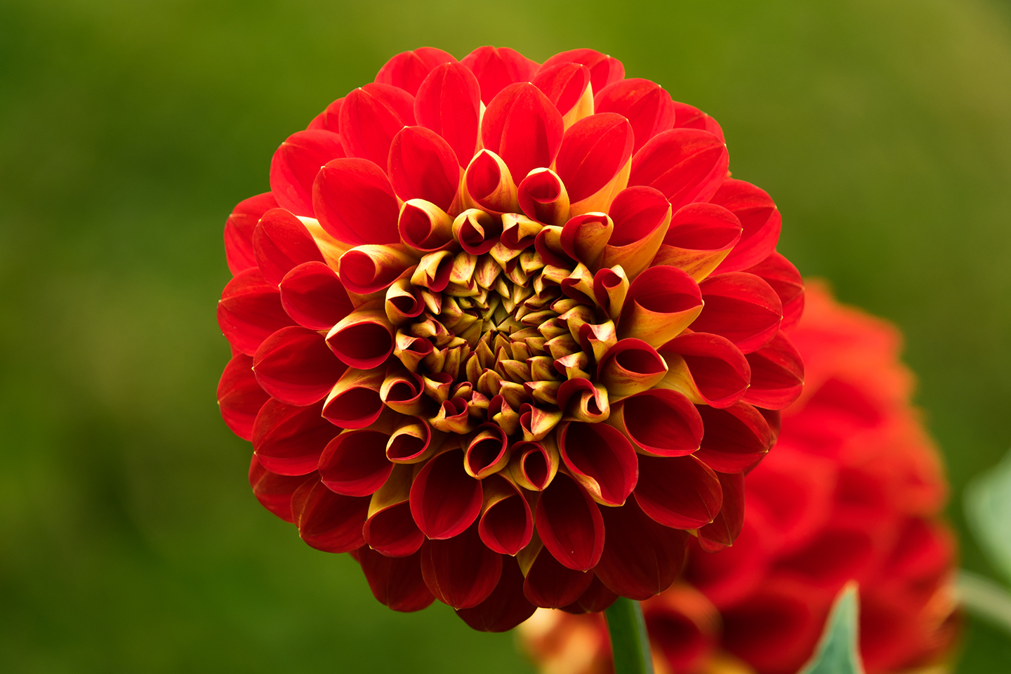 | 黄色とオレンジのダリア 燃え盛る太陽のよう |
