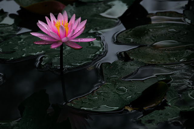 雨の後だったかどうかも定かではありませんが、露を花びらの上に沢山乗せた睡蓮の花が、いつも以上にキラキラと美しい花を咲かせていました。