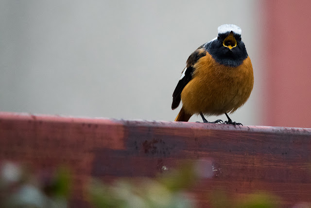 写真はジョウビタキ、オレンジボディーが鮮やかな、なかなかの人気者です。
